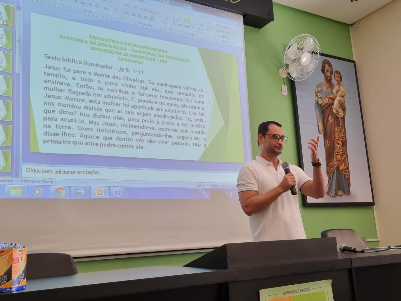 No dia 26 de março aconteceu o primeiro encontro presencial da Diaconia e Pastoral da Educação. O grupo tem como membros candidatos ao diaconato permanente e educadores de toda diocese. Este encontro faz parte do projeto de construção da referida pastoral em nossa diocese, que vem ao longo de dois anos em uma formação para que a pastoral da educação seja realidade na Diocese de Divinópolis. A pastoral da educação tem como objetivo geral promover, articular e organizar ações evangelizadoras no mundo da educação, compreendido como pessoas, instituições e ambientes relacionados à educação, com a finalidade de ser sinal do Reino de Deus e de construir um ser humano fraterno, livre, justo, consciente, comprometido e ético. O foco de ação da Pastoral da Educação é o educador. Este encontro aconteceu com intuito de acolher, cuidar e escutar os educadores. Cerca de 30 pessoas participaram do encontro. Anteriormente, na pandemia, os educadores convidados responderam um questionário online para partilhar suas realidades. Com os dados coletados, a Diaconia preparou este evento.