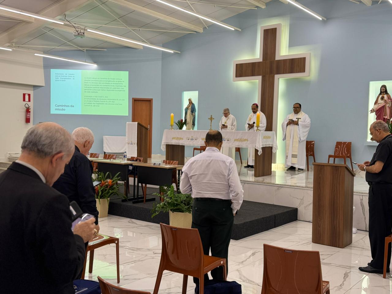 O segundo dia da Assembleia foi encerrado com a celebração das Vésperas, presidida por Dom Geovane Luís, bispo da Diocese de Divinópolis.