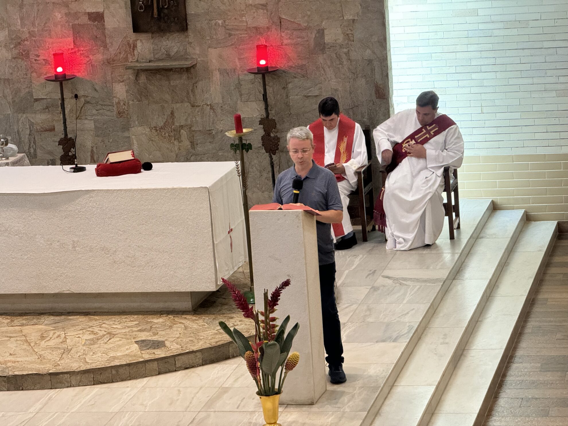 Na manhã do dia 07, quinta-feira, o Bispo, Padres e Diáconos tiveram a oportunidade de partilhar em pequenos grupos, as experiências e esperanças do exercício ministerial, à luz das reflexões apresentadas anteriormente pelo Pe. Taborda.