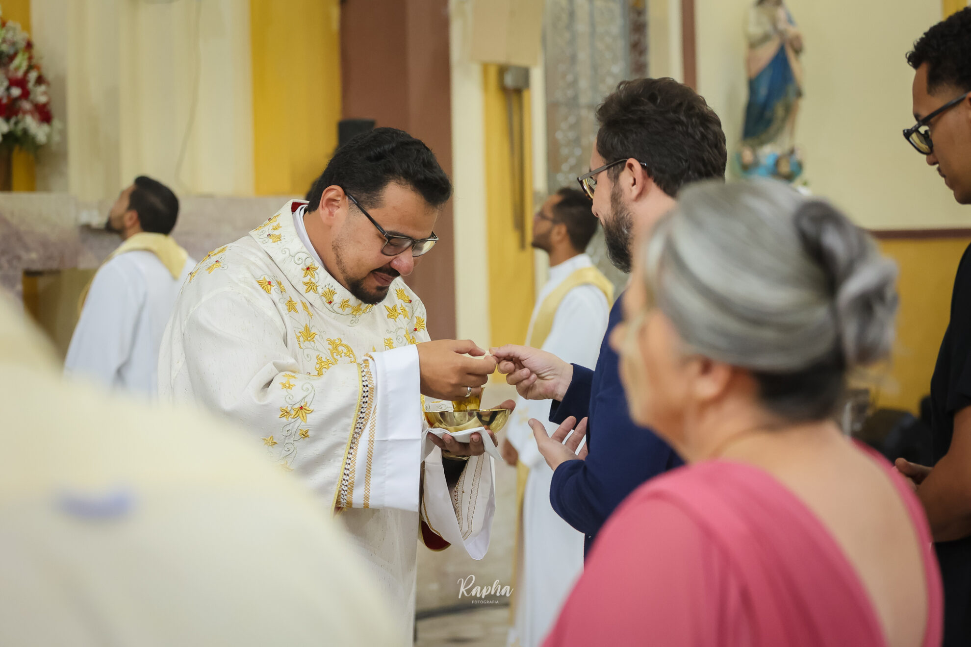 Foi realizada na noite desta sexta-feira (27/06), na Catedral do Divino Espírito Santo, em Divinópolis, a ordenação diaconal de Rogério Rafael Mendes de Oliveira, para o serviço de Deus e de sua Igreja. A cerimônia foi bastante emocionante e transmitida pelo canal da Diocese de Divinópolis. A ordenação diaconal é um sacramento da Igreja Católica onde um homem é consagrado para o ministério do serviço, sendo o primeiro grau da Ordem, seguido pelo presbiterado (padres) e episcopado (bispos). O rito, realizado pelo bispo, Dom Geovane Luís da Silva, envolve a imposição das mãos e a oração consecratória, investindo o candidato com a graça do Espírito Santo para o serviço na Igreja. O diácono ordenado passa a ter um papel de serviço, auxiliando os padres em celebrações, pregando a Palavra, e dedicando-se à caridade e ao cuidado com os necessitados.