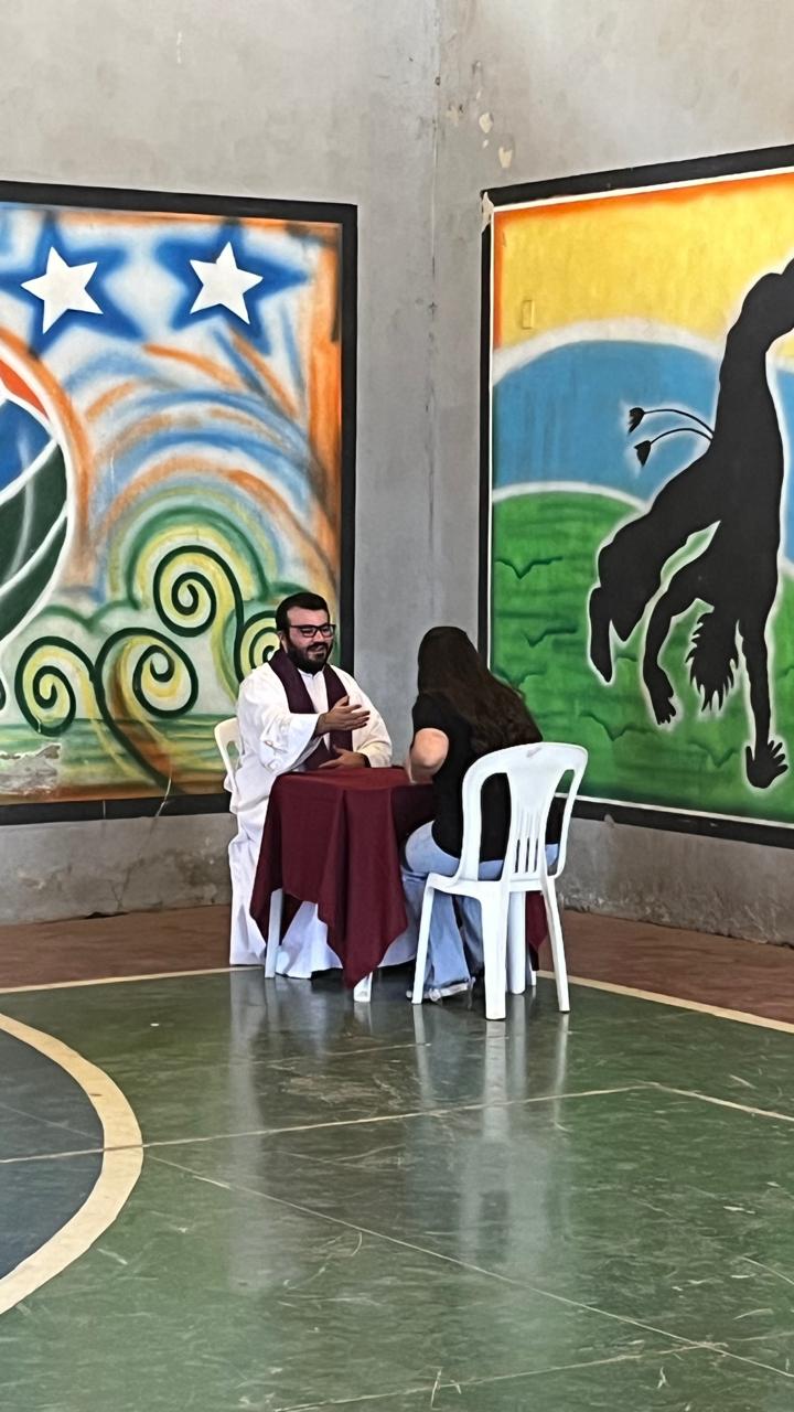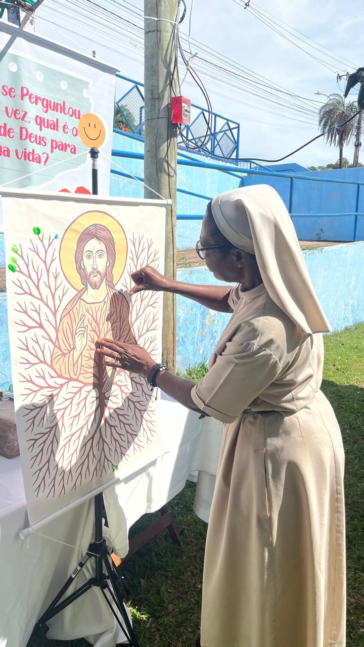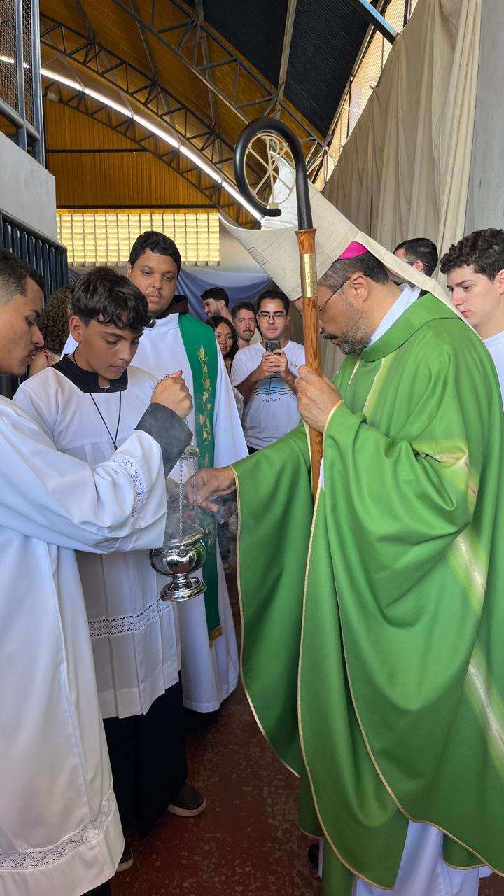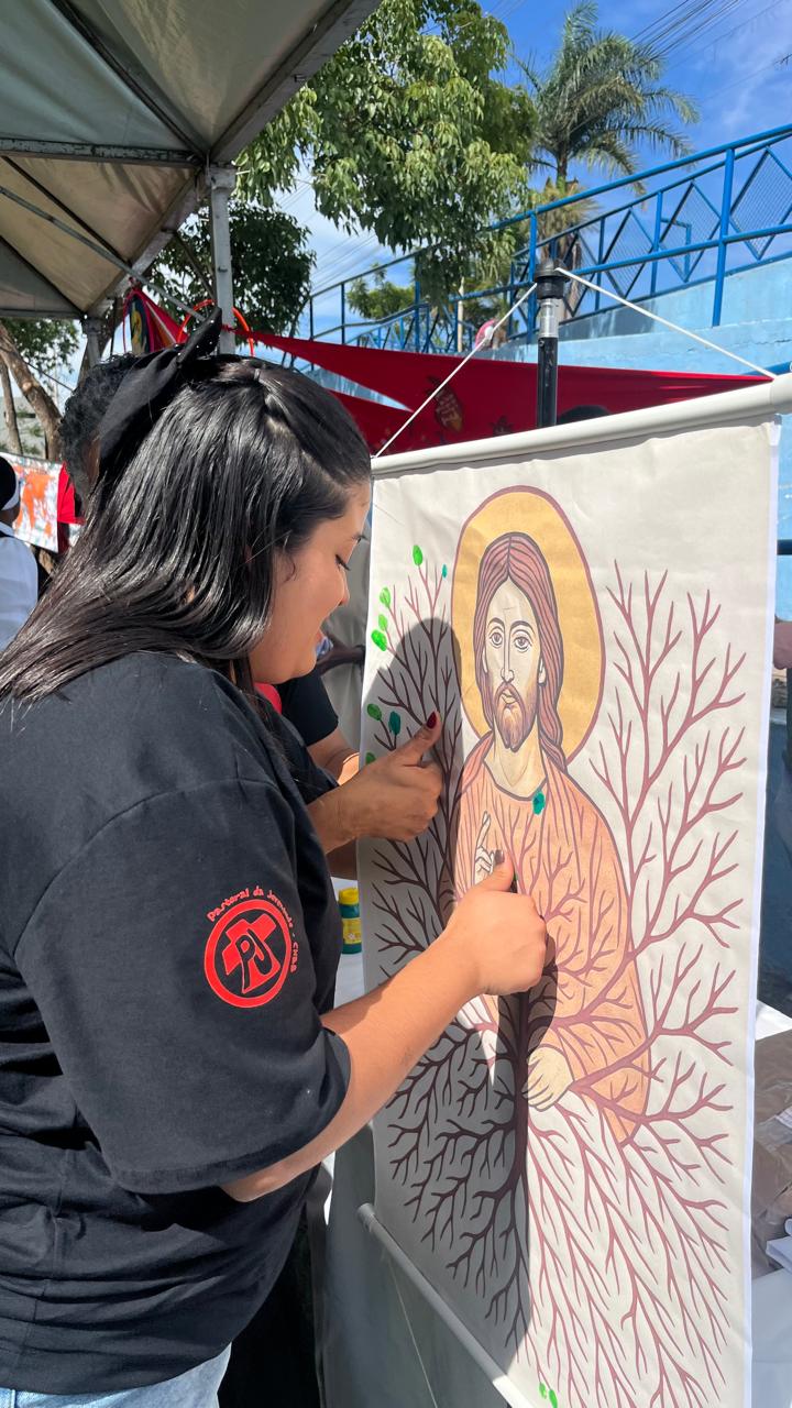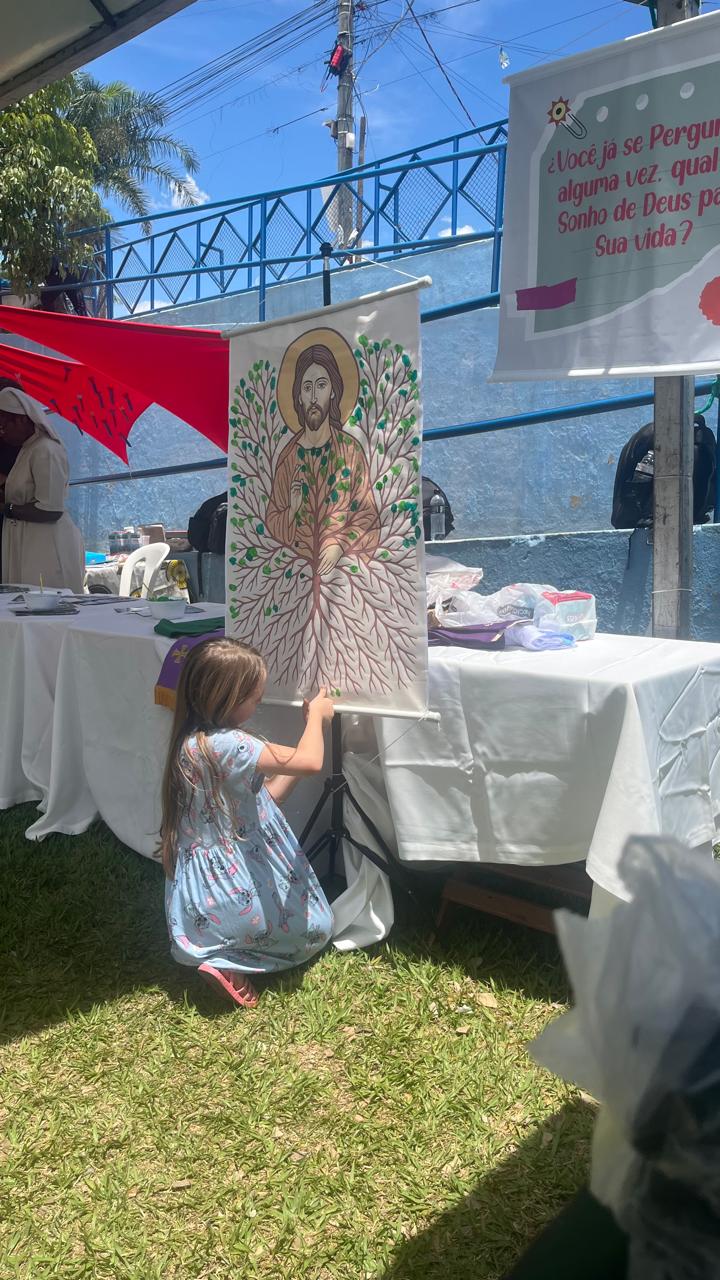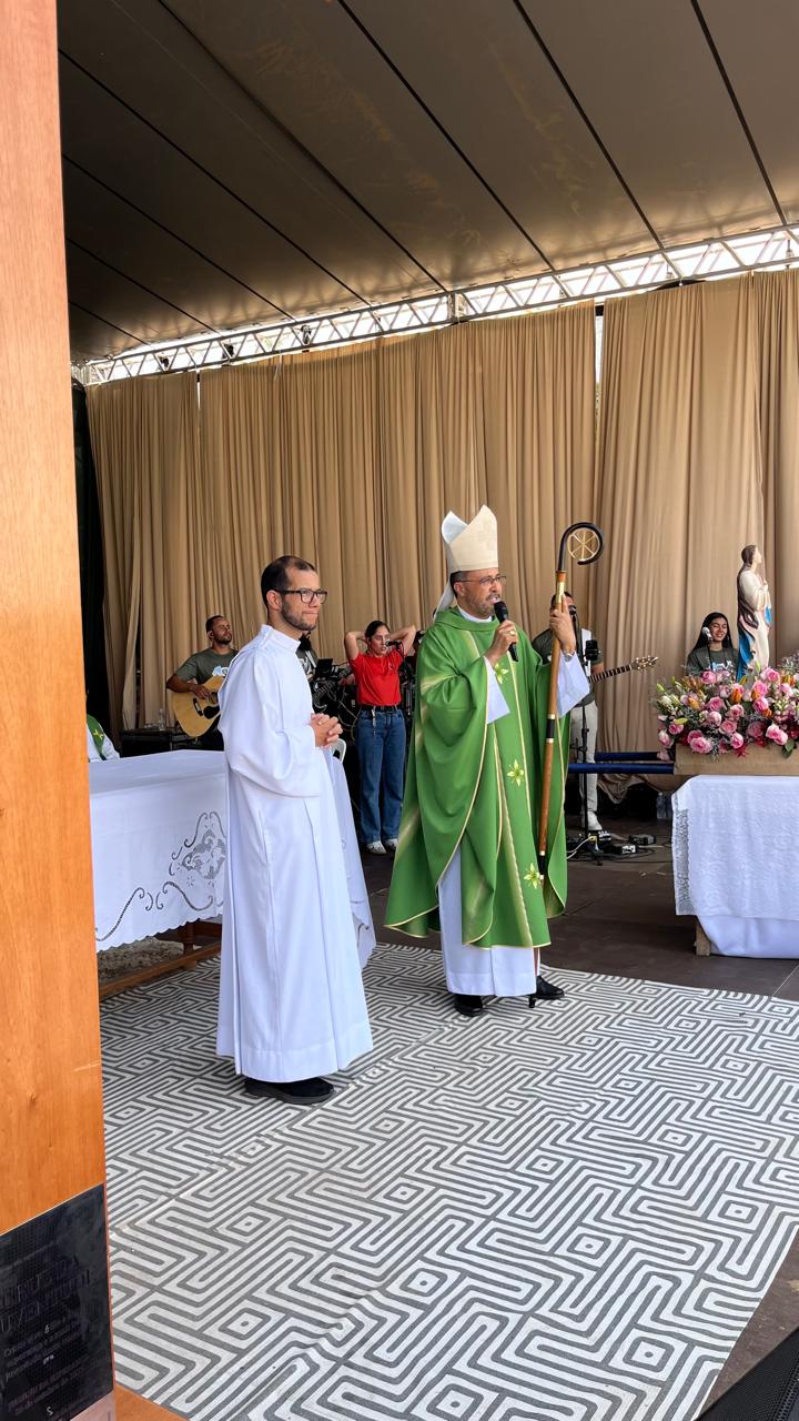 A presença do seminário, religiosos (as) e vocacionados também foi destaque nesta edição! Eles montaram uma tenda, para acolher os jovens e falar sobre as diversas vocações. No local, eles colocaram um painel colaborativo, em que as pessoas iam acrescentando folhas na árvore da vida. Até o bispo Dom Geovane deixou sua contribuição no painel. Ele visitou a praça de alimentação, tirou fotos com os jovens, e interagiu com os representantes da cidade de Pitangui, cidade escolhida para a edição 2026 do DNJ.