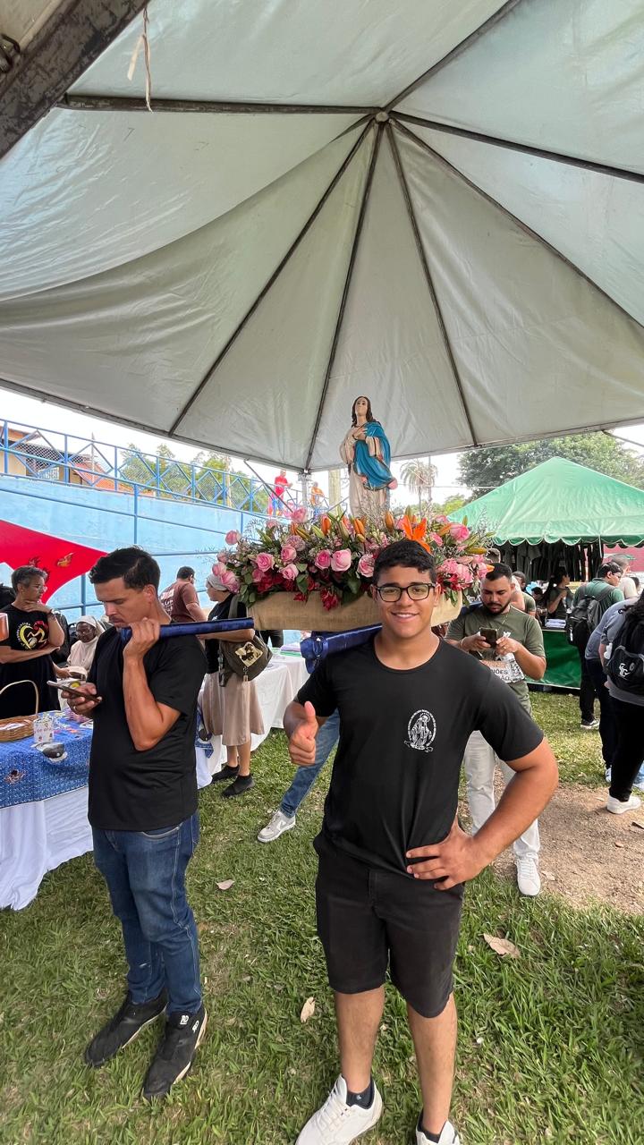 Teve uma pausa para o almoço com sorteios e brincadeiras, além de show com músicas religiosas em ritmo de samba. Na parte da tarde, uma palestra com o tema: Peregrinos de Esperança. “A Esperança não decepciona” foi realizada. E para fechar o dia muita música e dança. Com o calor do domingo, um banho de mangueira levou diversão e descontração aos participantes.