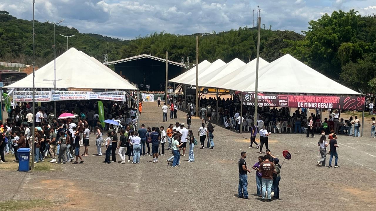 Milhares de jovens, em dezenas de caravanas das 25 cidades (que fazem parte da Diocese de Divinópolis) se reuniram neste domingo (26/10), em Juatuba, para o Dia Nacional da Juventude (DNJ). O evento é anual e promovido pela Igreja Católica no Brasil para reunir jovens em celebrações de fé, espiritualidade e compromisso social. Foi criado em 1985 pela CNBB e é sempre cercado de muita expectativa, já que é organizada uma programação atrativa e animada para o dia inteiro. Padre Guilherme, assessor diocesano do Setor da Juventude, destacou o quanto foi gratificante ver que os vários movimentos se engajaram e este foi um dos maiores DNJs da história. “Tivemos um número recorde de participantes, estamos felizes demais com esse resultado”, destacou.