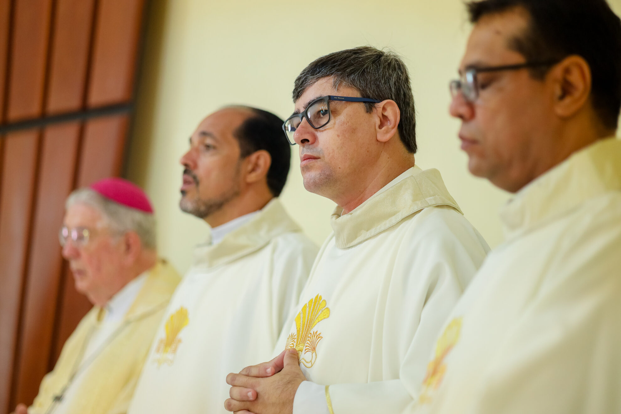 no trecho do evangelho que foi proclamado a pouco, ouvimos São Lucas afirmar que todas as pessoas que estavam na sinagoga tinham os olhos fixos em Jesus. Mas se prosseguirmos a leitura dos versículos seguintes veremos que o encanto pela pregação de Jesus na sinagoga foi passageiro, pois o Mestre não se deixou prender pelos interesses mesquinhos de seus conterrâneos. Ao final os nazarenos queriam lançar Jesus no precipício. Ele, porém, passando pelo meio deles, continuou o seu caminho. Caros presbíteros, coragem! Anunciemos o Evangelho mesmo em meio aos possíveis fracassos e incompreensões. Na sinagoga de Nazaré, o ministério de Jesus não teve êxito, a Palavra não foi ouvida.