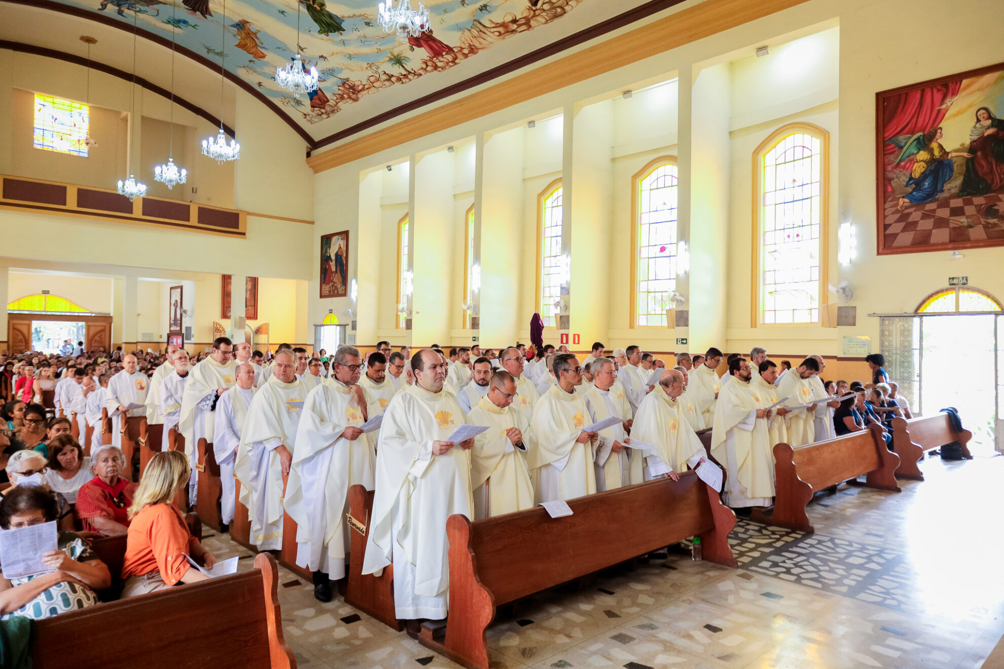 A celebração eucarística contou com a presença dos padres e diáconos, religiosos e religiosas, seminaristas, candidatos ao Diaconato Permanente e representantes das 54 paróquias da Diocese.
