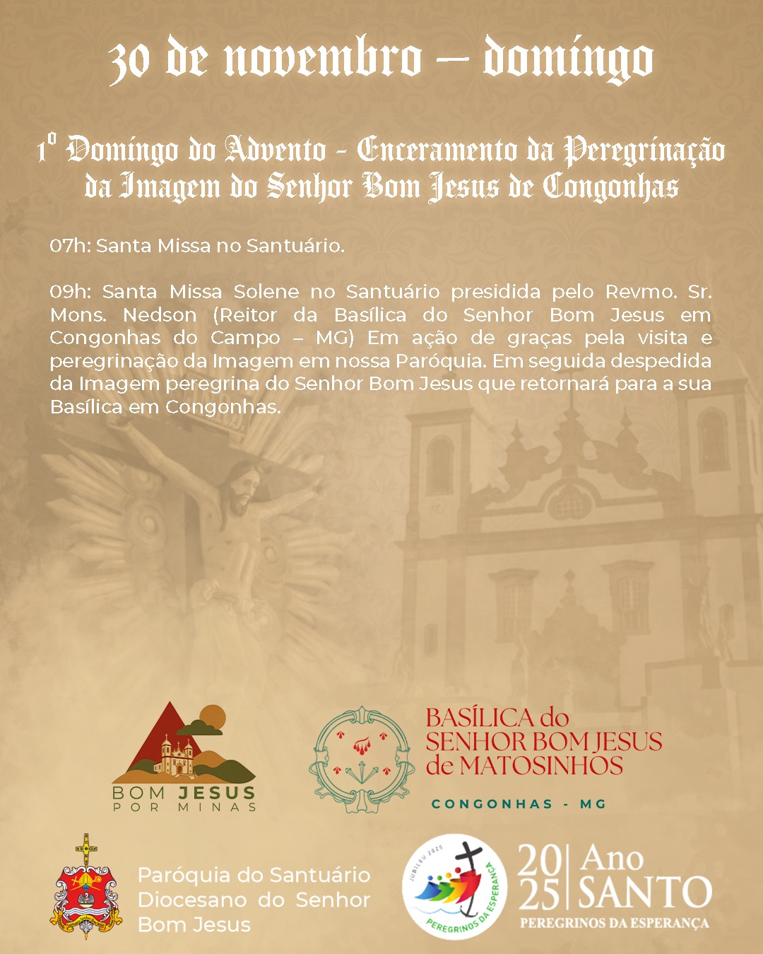 1º DOMINGO DO ADVENTO – ENCERAMENTO DA PEREGRINAÇÃO DA IMAGEM DO SENHOR BOM JESUS DE CONGONHAS