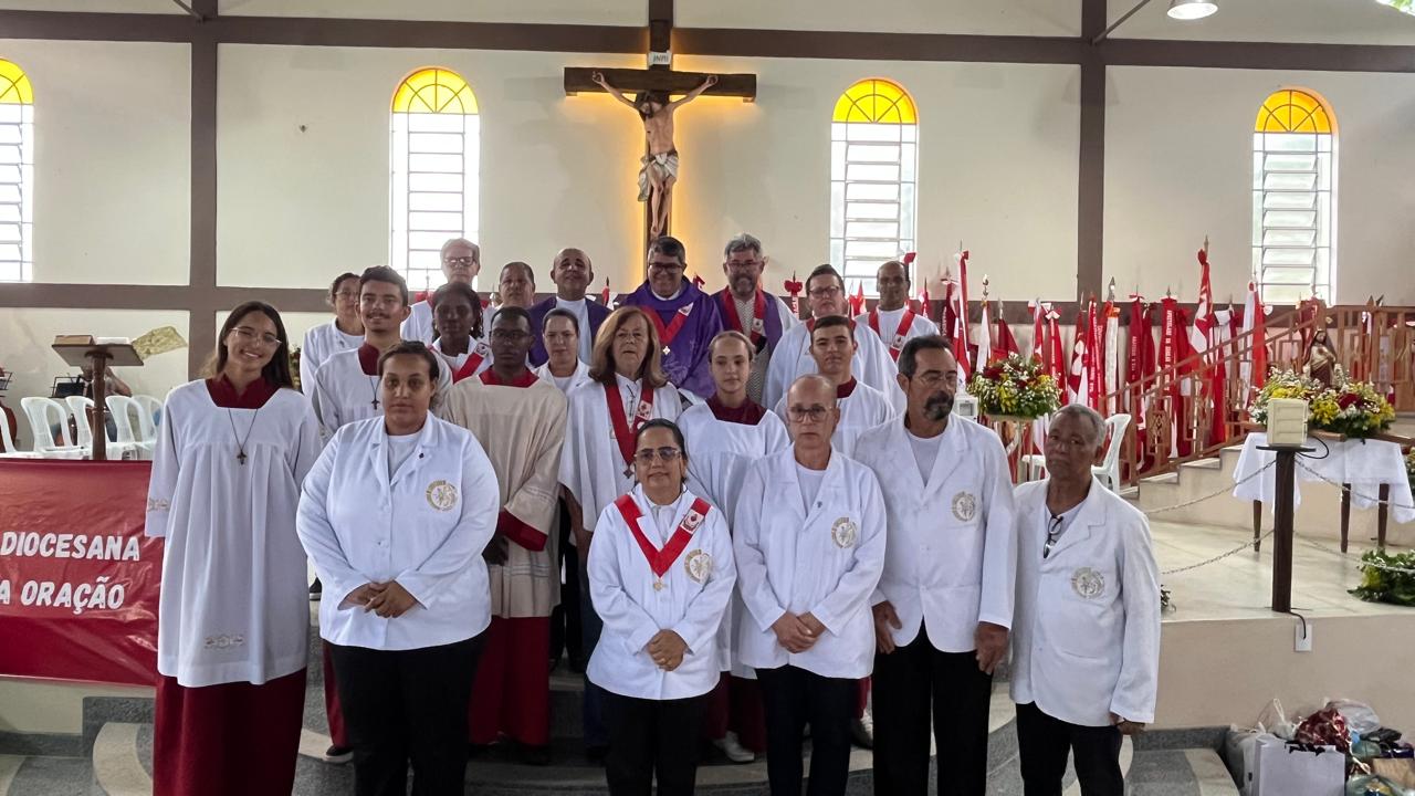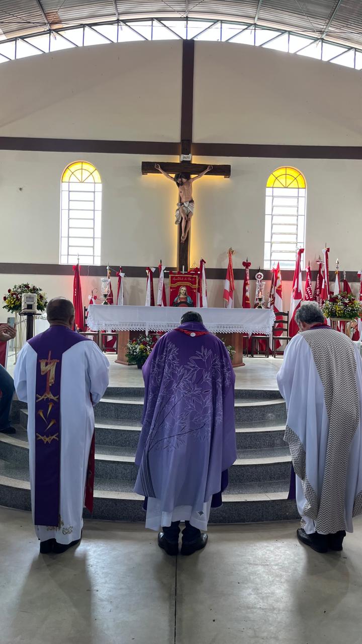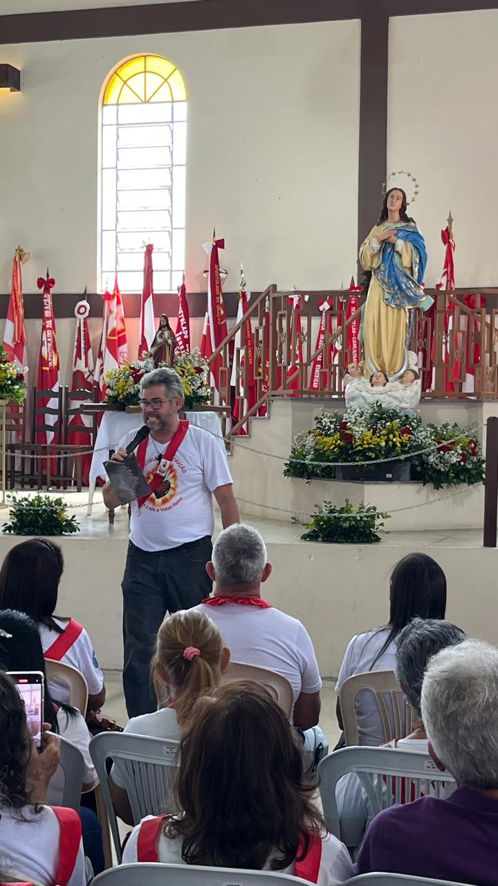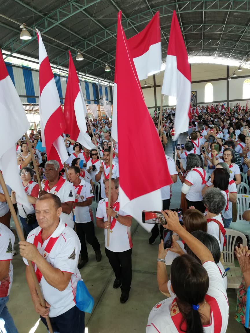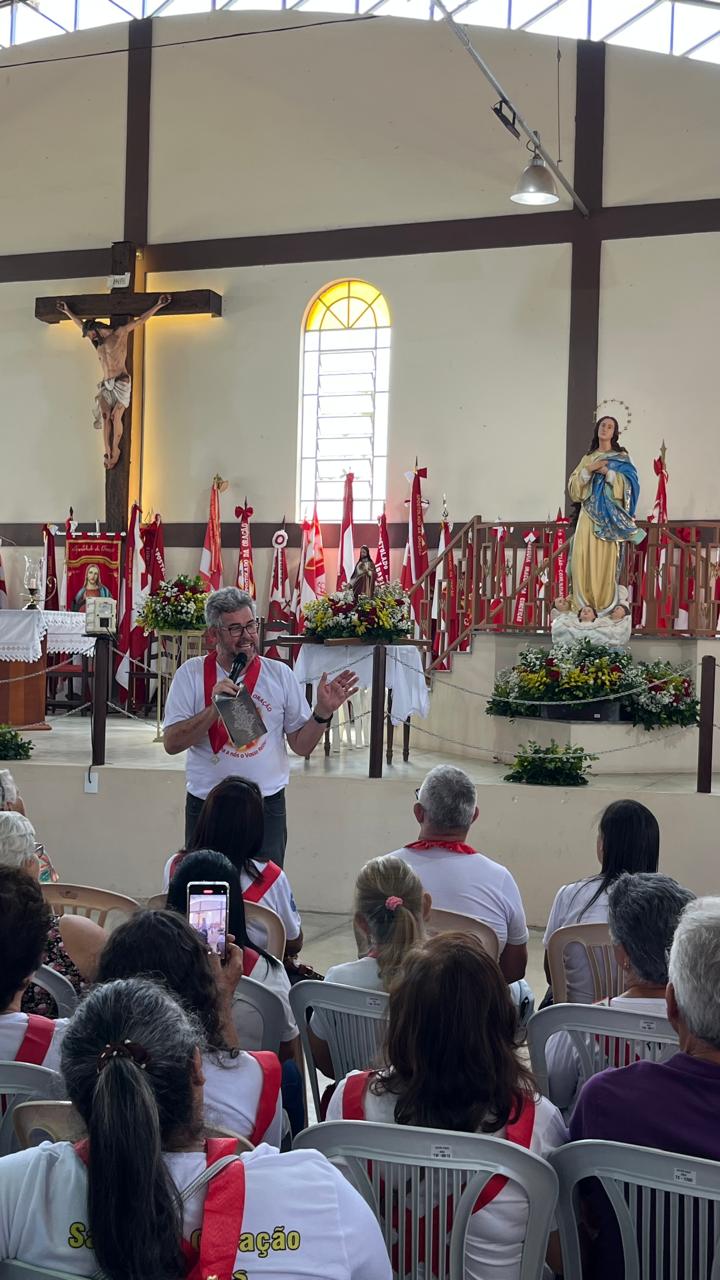 Neste domingo (30/11) o Santuário Diocesano de Nossa Senhora da Conceição, em Conceição do Pará, ficou lotado com a presença dos membros do Apostolado da Oração. Eles fizeram um café comunitário, tiveram um momento de palestra com o padre Hermínio e por volta das 10h uma celebração eucarística festiva. A quantidade de bandeiras dos grupos presentes impressionou os participantes.