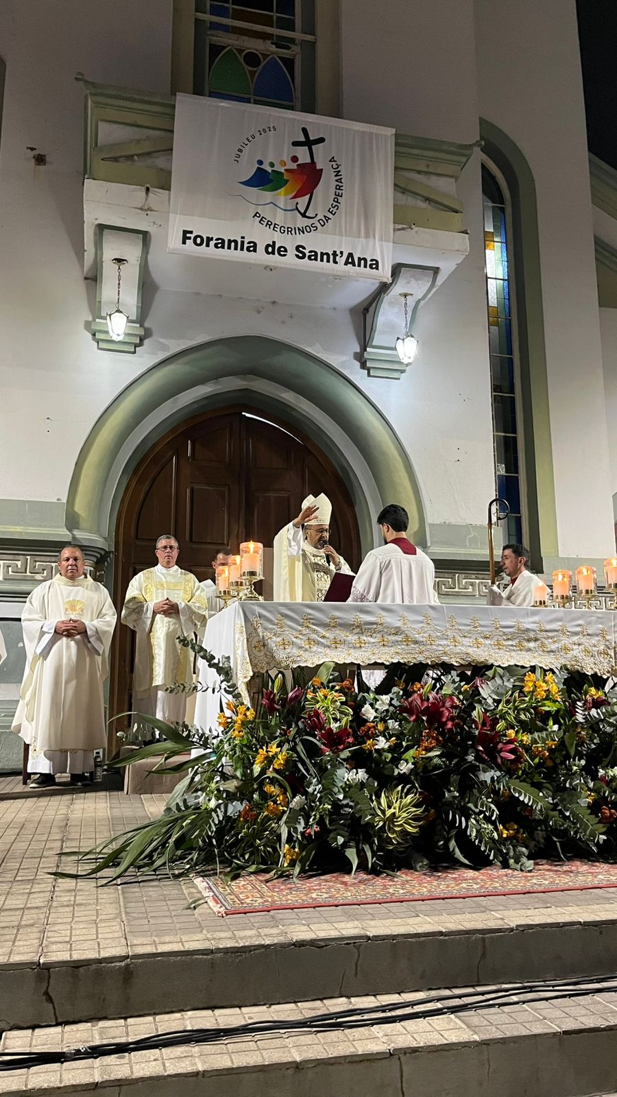 Foi realizada neste domingo, dia 24 de agosto, a Missa Jubilar do Ano Santo da Esperança da Forania de Sant’Ana. Cerca de duas mil pessoas participaram do momento festivo. A concentração começou por volta das 16h, na capela do Rosário. Dom Geovane em uma fala de acolhida, dentro da capela, lembrou aos fiéis que “todos somos peregrinos da esperança”.