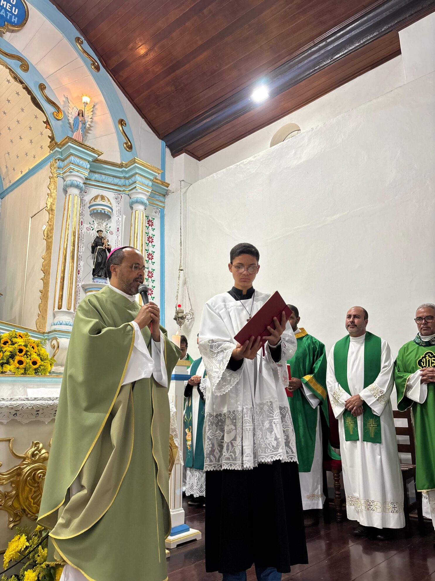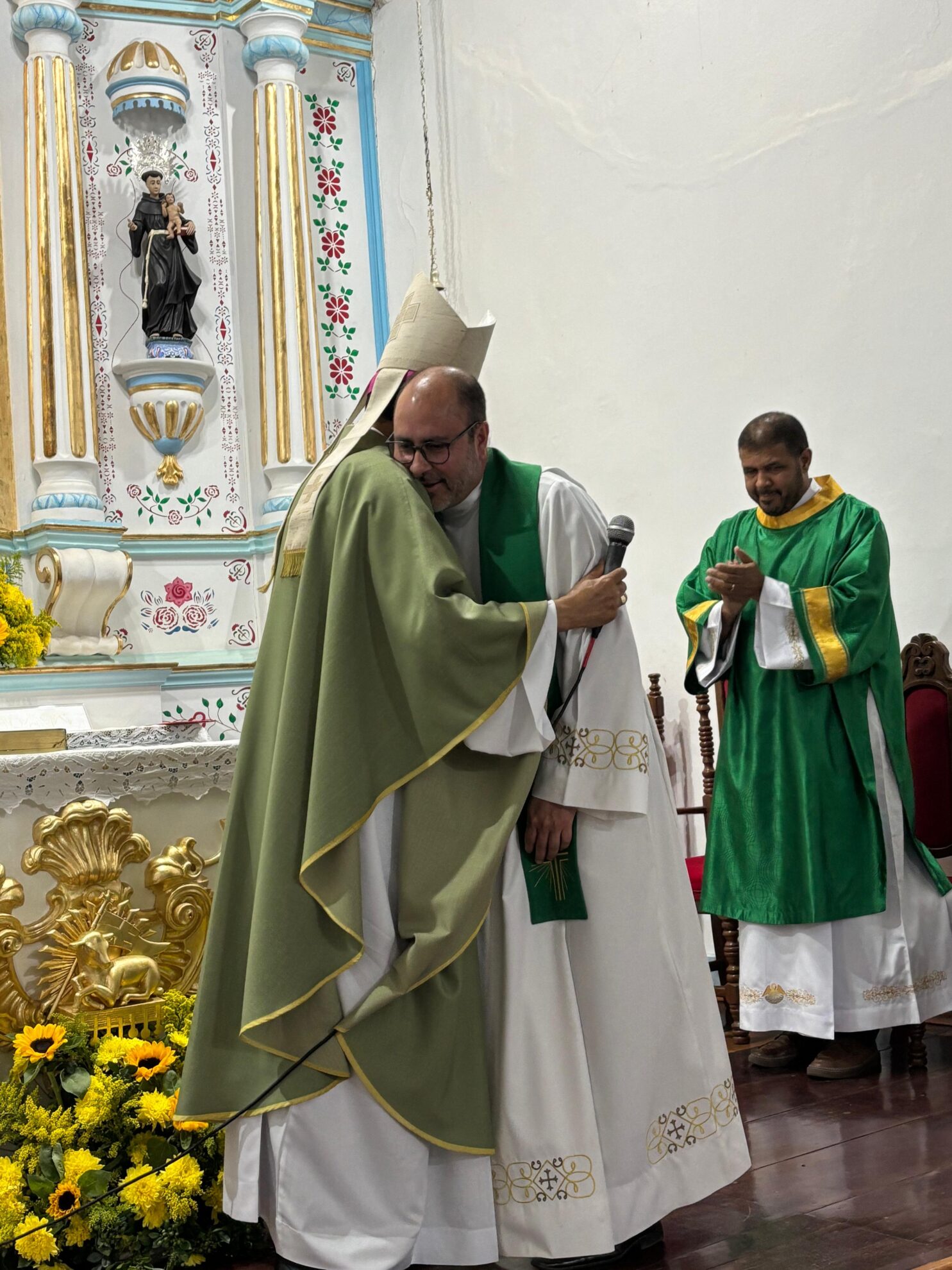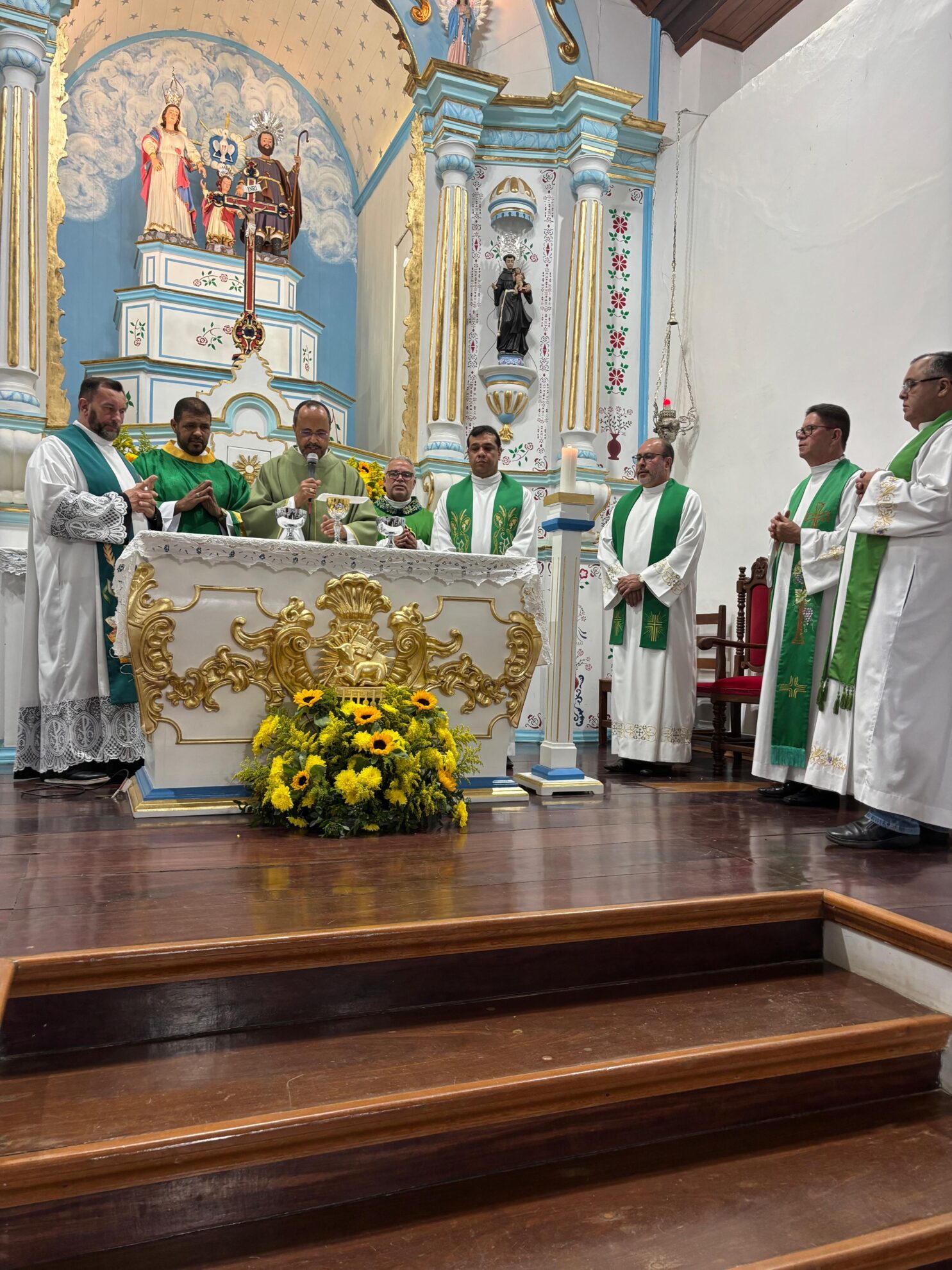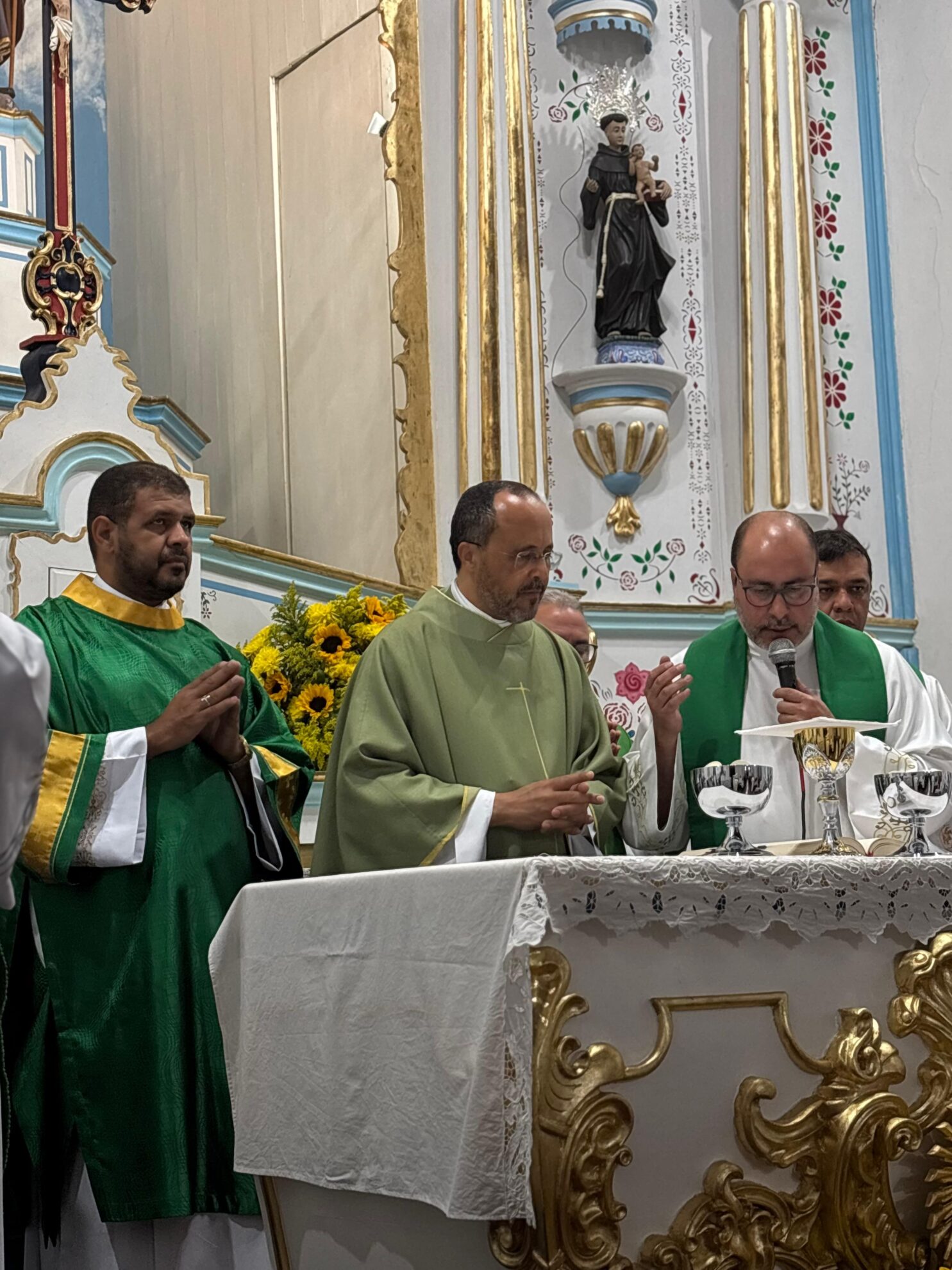 A missa festiva foi celebrada pelo bispo Dom Geovane Luís da Silva que realizou o rito de posse e concelebrada por outros presbíteros da Diocese em sinal de acolhida. Votos de que a missão sacerdotal dele nesta paróquia seja frutuosa, de sabedoria e abençoada foram destacados durante o momento de fé.