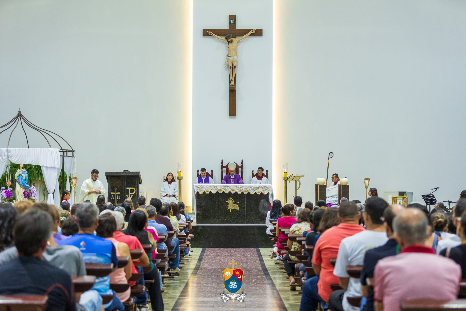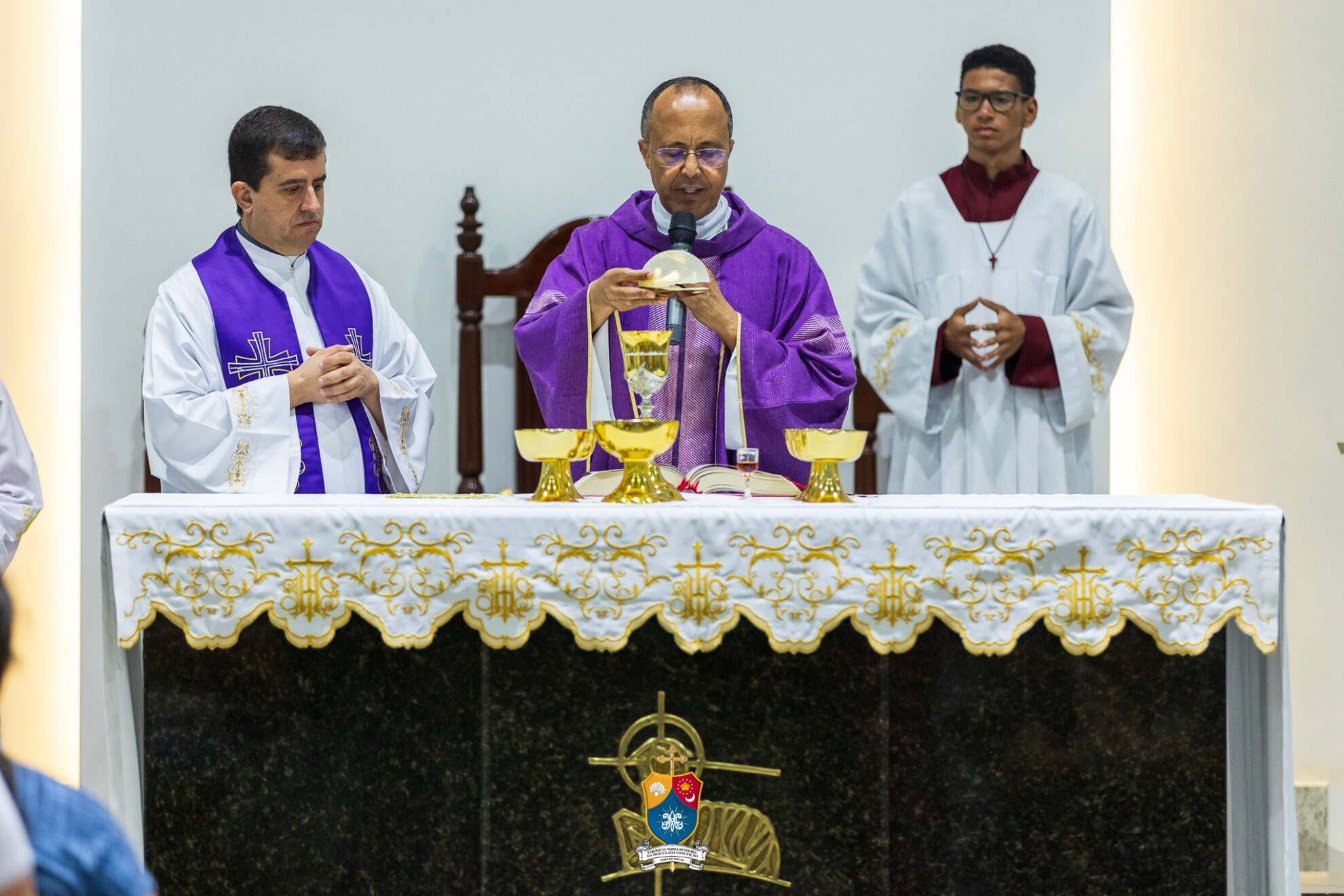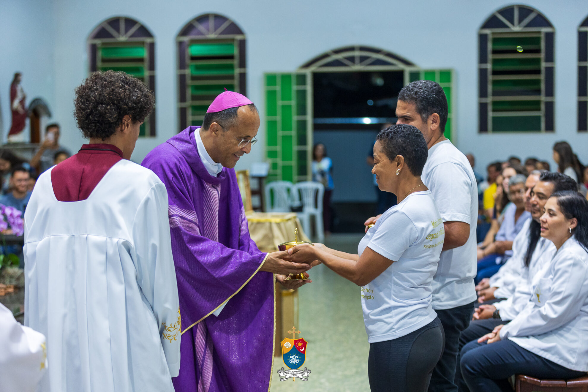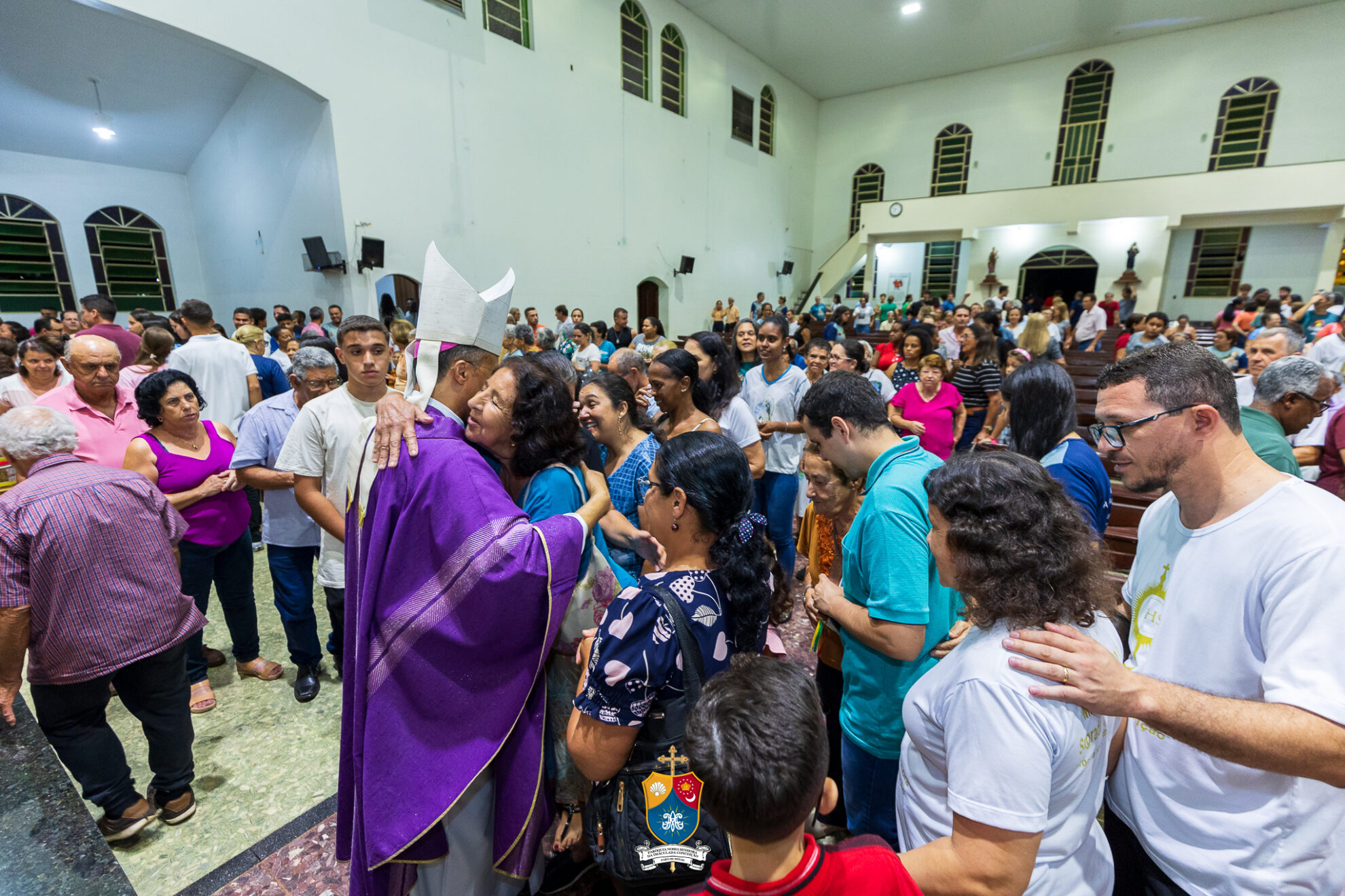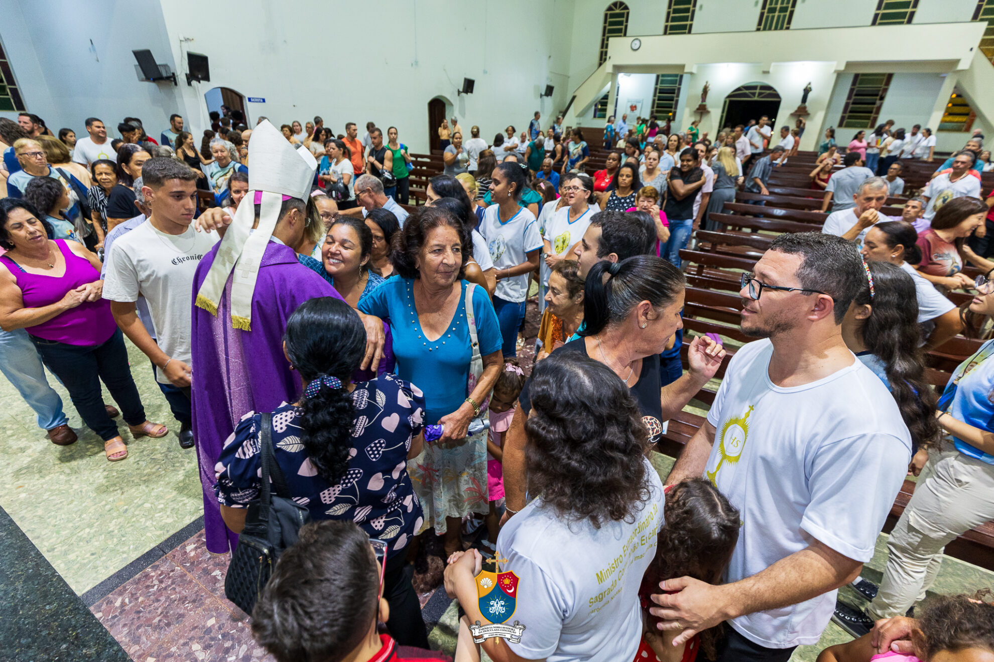 Após o novenário, deu-se início a Santa Missa, concelebrada por Padre Leonardo Moisés, Adm. Paroquial da Paróquia. Ao final da celebração, Dom Geovane Luís, foi mais uma vez acolhido pelos fiéis que gentilmente ofertaram-lhe um abraço afetuoso.