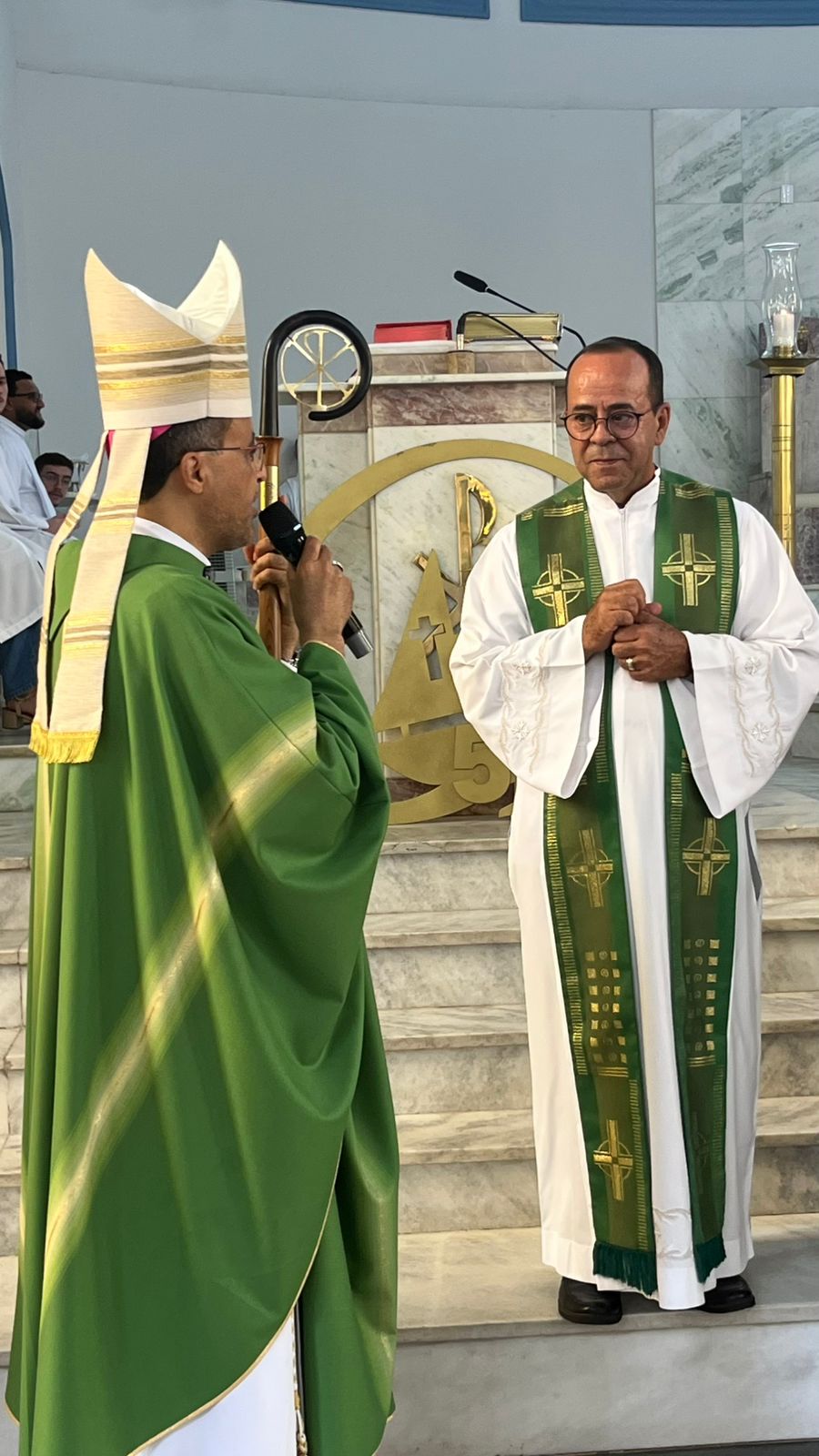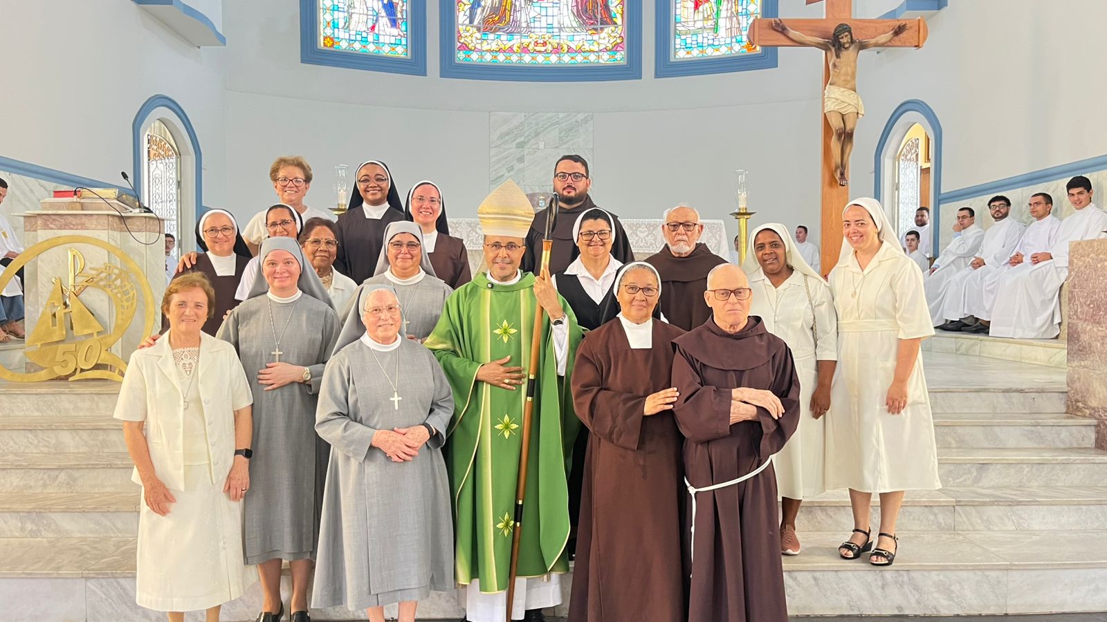 APastoral Vocacional da Diocese de Divinópolis celebrou neste domingo (01/02) Ação de Graças pelo Jubileu de Ouro. Este momento celebrativo marca cinquenta anos de serviço, escuta e acompanhamento das vocações, expressando a fidelidade de Deus e o empenho de tantas pessoas que se dedicaram a essa missão ao longo do tempo. A celebração foi uma oportunidade especial para louvar, agradecer e renovar o compromisso vocacional de nossa Igreja diocesana. A celebração reuniu dezenas de agentes de pastoral, religiosos, religiosas (inclusive os membros do CRB Diocesano), seminaristas, famílias e fiéis, fortalecendo os laços de unidade e fé. A Celebração Eucarística foi presidida pelo Bispo Diocesano, Dom Geovane Luiz, que agradeceu ao padre Geraldo Maia pelo cuidado e empenho com a caminhada vocacional da Diocese. A Igreja reunida elevou a Deus uma sincera ação de graças pelos frutos colhidos e pelas sementes lançadas ao longo desses cinquenta anos. Um momento de profunda espiritualidade, memória agradecida e renovado ardor missionário, confiando ao Senhor as vocações de nossa Igreja Particular.