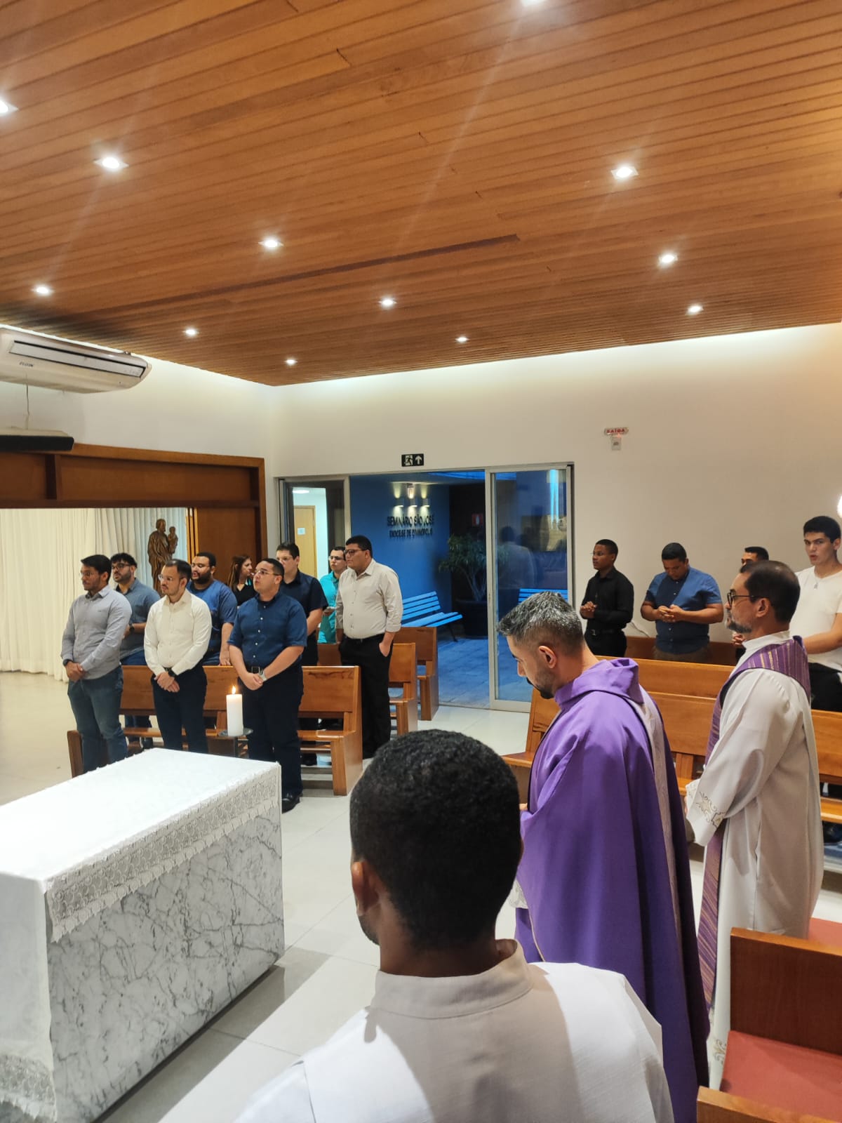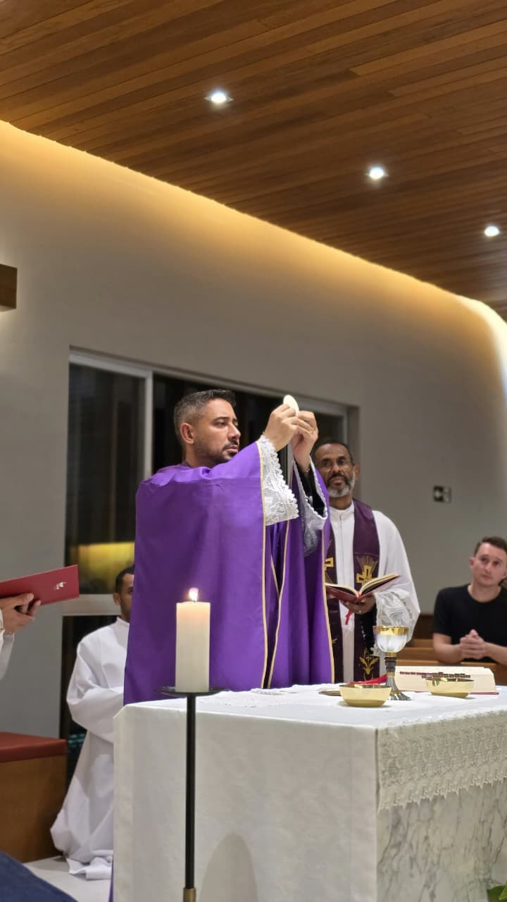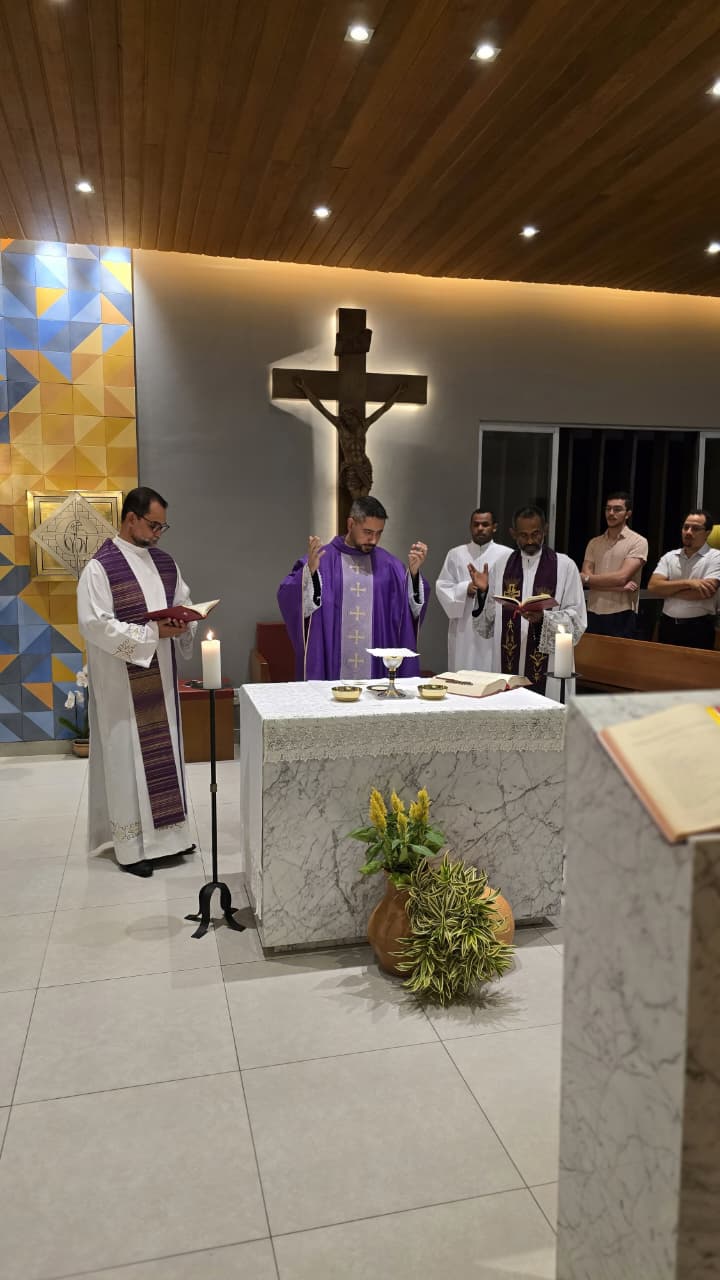 No dia 16 de março, foi celebrado o primeiro dia do Tríduo em honra a São José, padroeiro do Seminário de nossa Diocese em Belo Horizonte/MG. A Eucaristia foi presidida pelo Pe. Fábio Camargos, vigário da Paróquia de Santo Antônio em Mateus Leme/MG. Além da nossa comunidade formativa e do nosso reitor, estavam presentes os seminaristas das Dioceses de Propiá/SE; de Patos/PB e os de Jequié/BA, com os quais esteve também o reitor, Pe. Juvan. Que o Glorioso São José, Esposo de Maria, interceda pela Igreja e pelas vocações sacerdotais. São José, valei-nos!