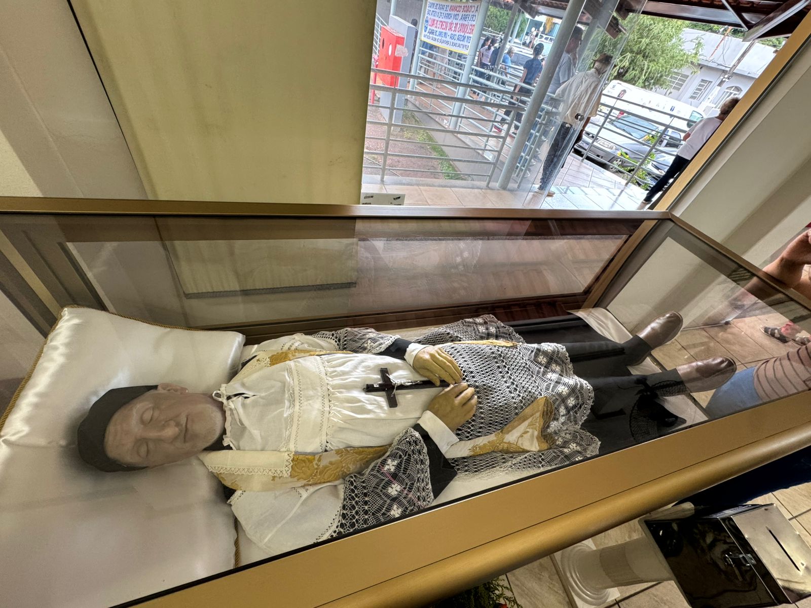 As relíquias de São Vicente de Paulo seguem em peregrinação pela Diocese de Divinópolis e ontem foi a vez da cidade de Pará de Minas. A chegada na Paróquia São Pedro aconteceu por volta das 11h, após passar por Nova Serrana. Na parte da tarde foi rezada uma missa no Cidade Ozanam (fotos) e depois, por volta das 16h, outra celebração especial na matriz. Teve veneração na celebração da noite e hoje, 5h30 da manhã, as relíquias seguiram para Igarapé, onde chegaram no fim da manhã.