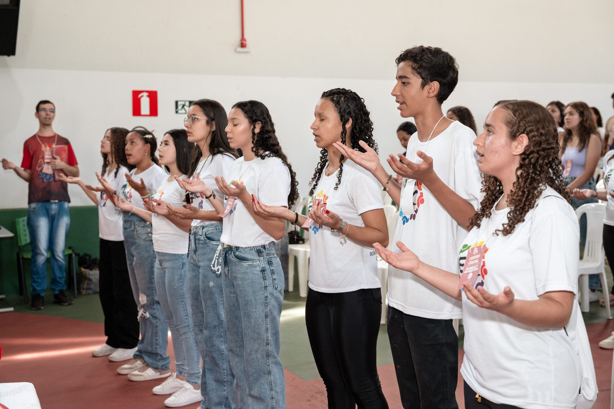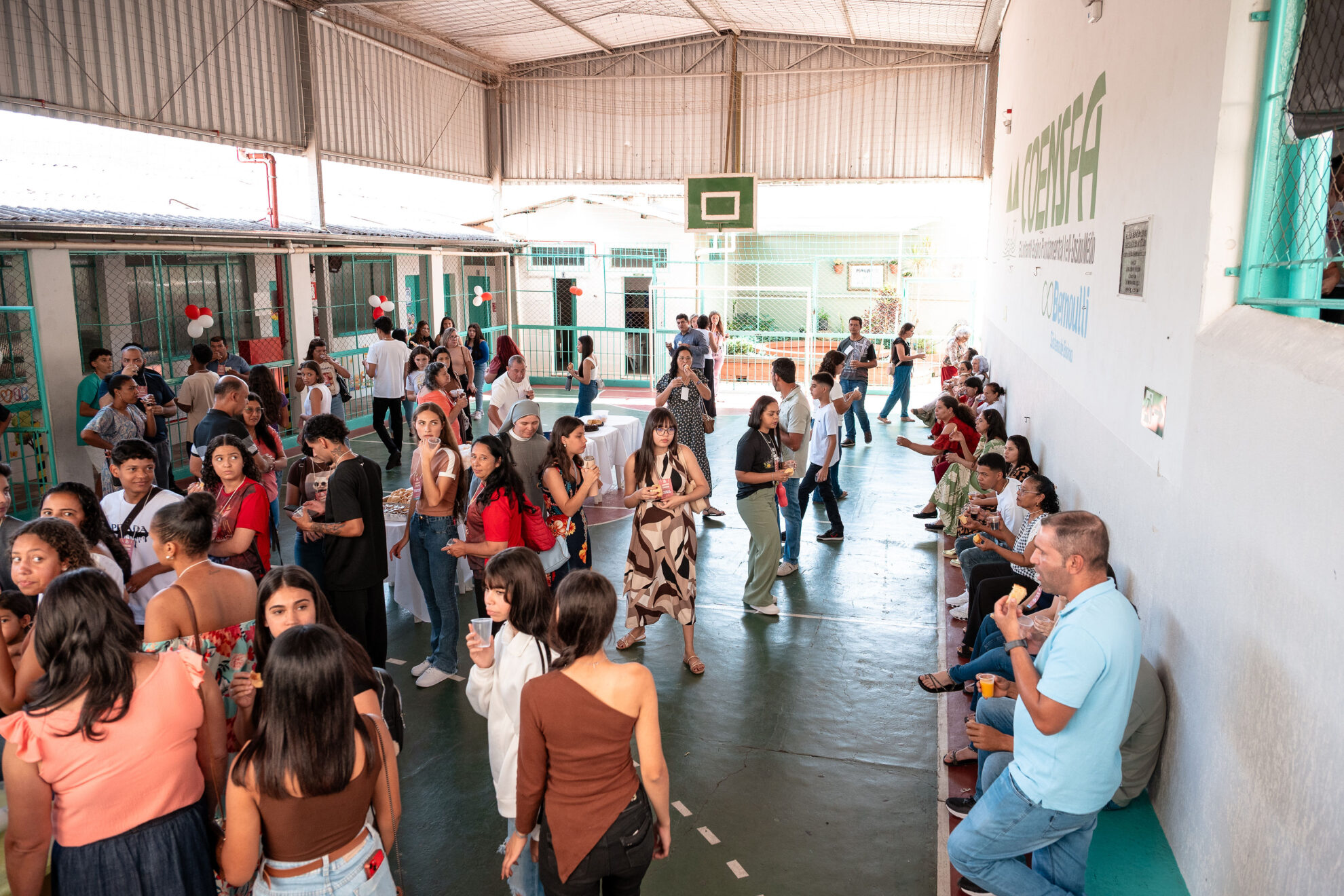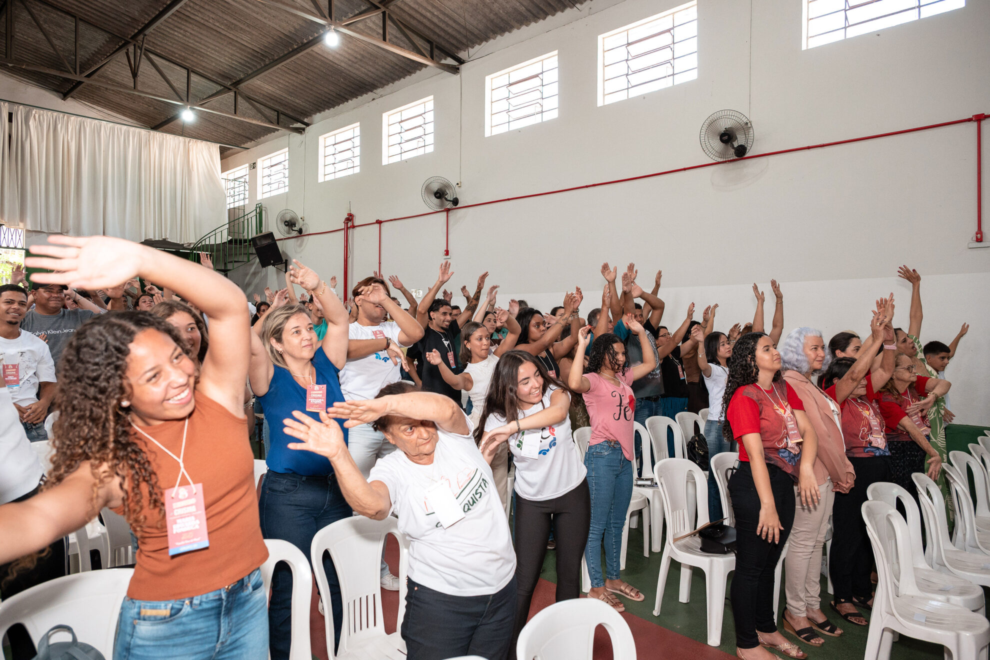Após a celebração, todos se dirigiram à Escola COENSFA (Cooperativa Educacional Nossa Senhora de Fátima), onde foram calorosamente acolhidos pelo movimento EAC (Encontro de Adolescentes com Cristo) de Mateus Leme. A equipe preparou uma programação dinâmica e envolvente, com palestras, momentos de oração, oficinas temáticas e atividades interativas, proporcionando aos participantes uma experiência profunda de espiritualidade e convivência.