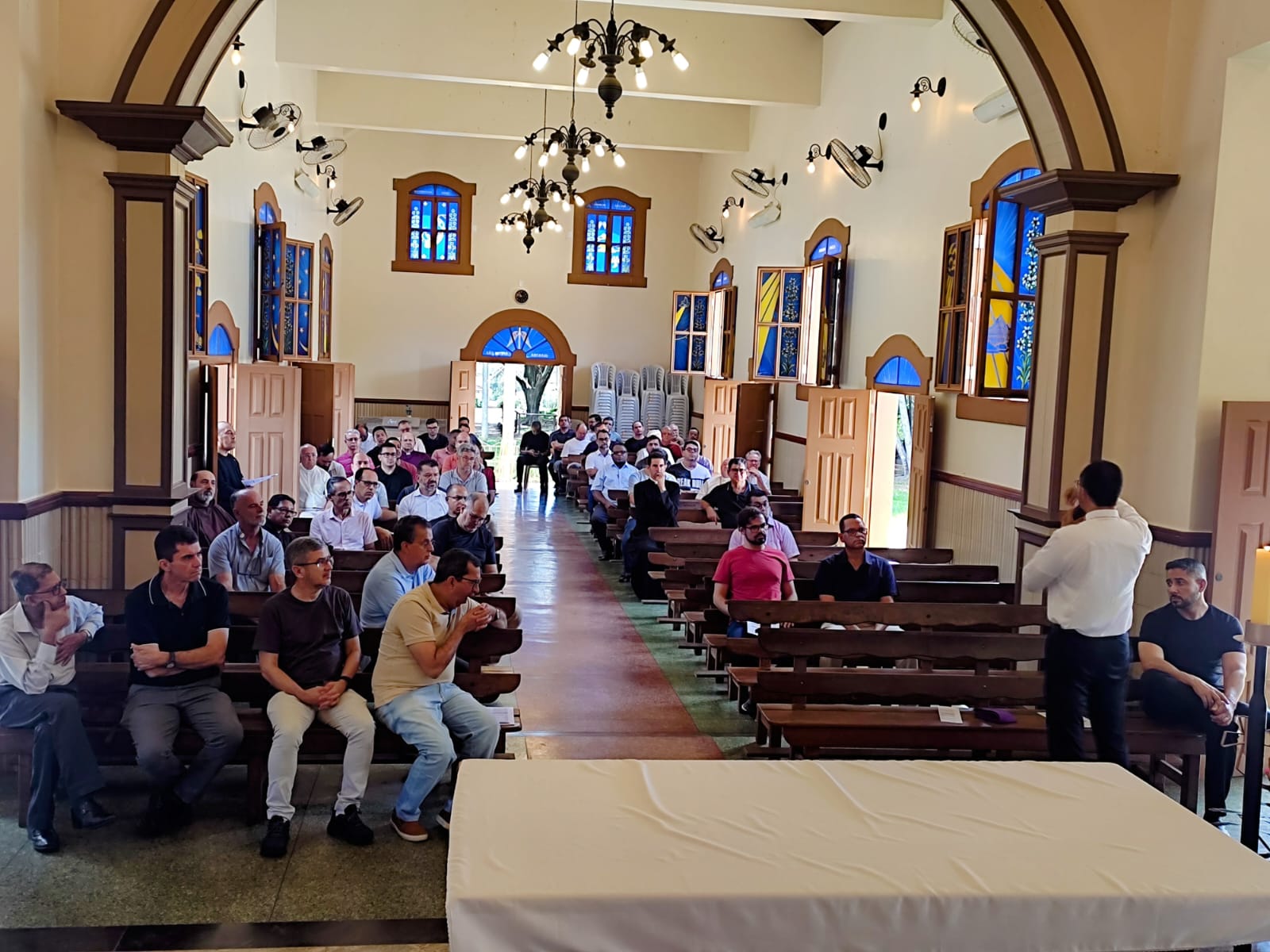 Pe. Adelmo Reis, anfitrião do encontro, falou da importância de receber os padres no Santuário. O Santuário da Imaculada Conceição deveria ser para a Diocese de Divinópolis o que Aparecida é para o Brasil. Ele agradeceu a todos pela presença e agradeceu também a equipe que o ajudou na preparação desse encontro. Após uma manhã de reflexões seguidas de confissões os padres participaram de um delicioso almoço.