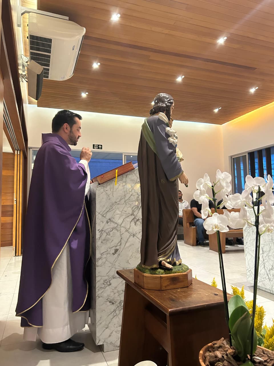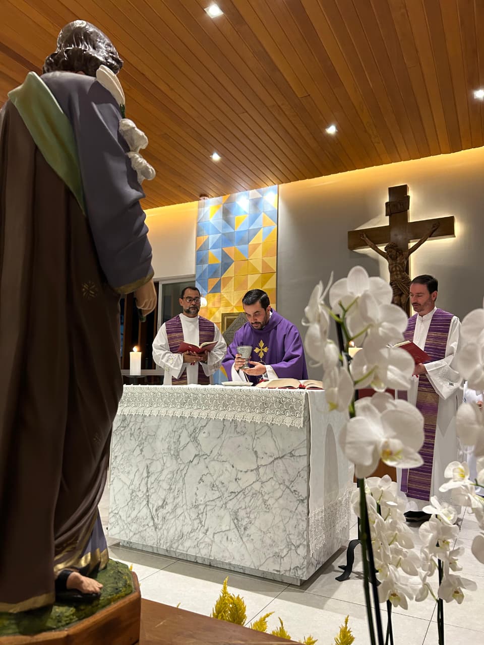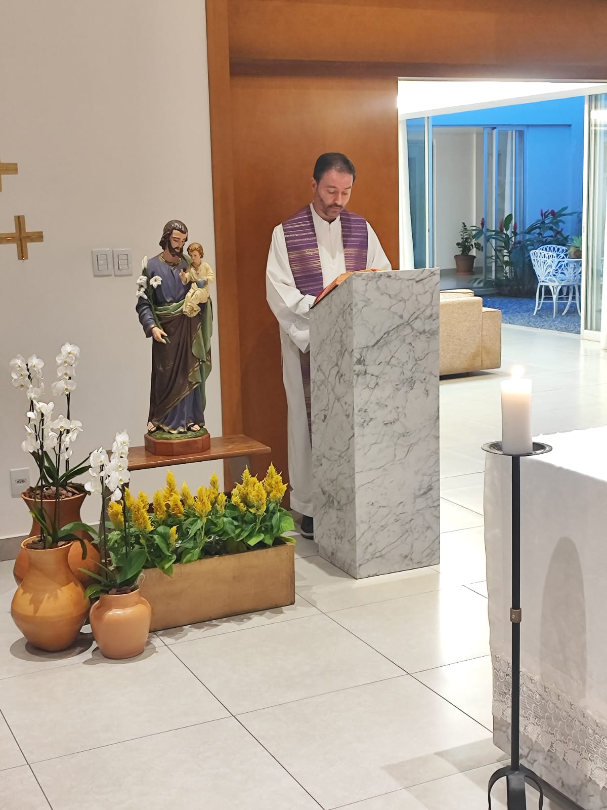 No dia 18 de março, foi celebrado o terceiro dia do Tríduo em honra a São José, padroeiro do nosso Seminário em Belo Horizonte/MG. A Eucaristia foi presidida pelo Pe. Helton Ferreira, pároco da Paróquia de São Geraldo em Nova Serrana/MG. Além da nossa comunidade formativa e do nosso reitor, estavam presentes os seminaristas das Dioceses de Oliveira/MG e de Luz/MG, com os quais esteve também o reitor, Pe. Marcos Tiago. Que o Glorioso São José, Esposo de Maria, interceda pela Igreja e pelas vocações sacerdotais. São José, valei-nos!